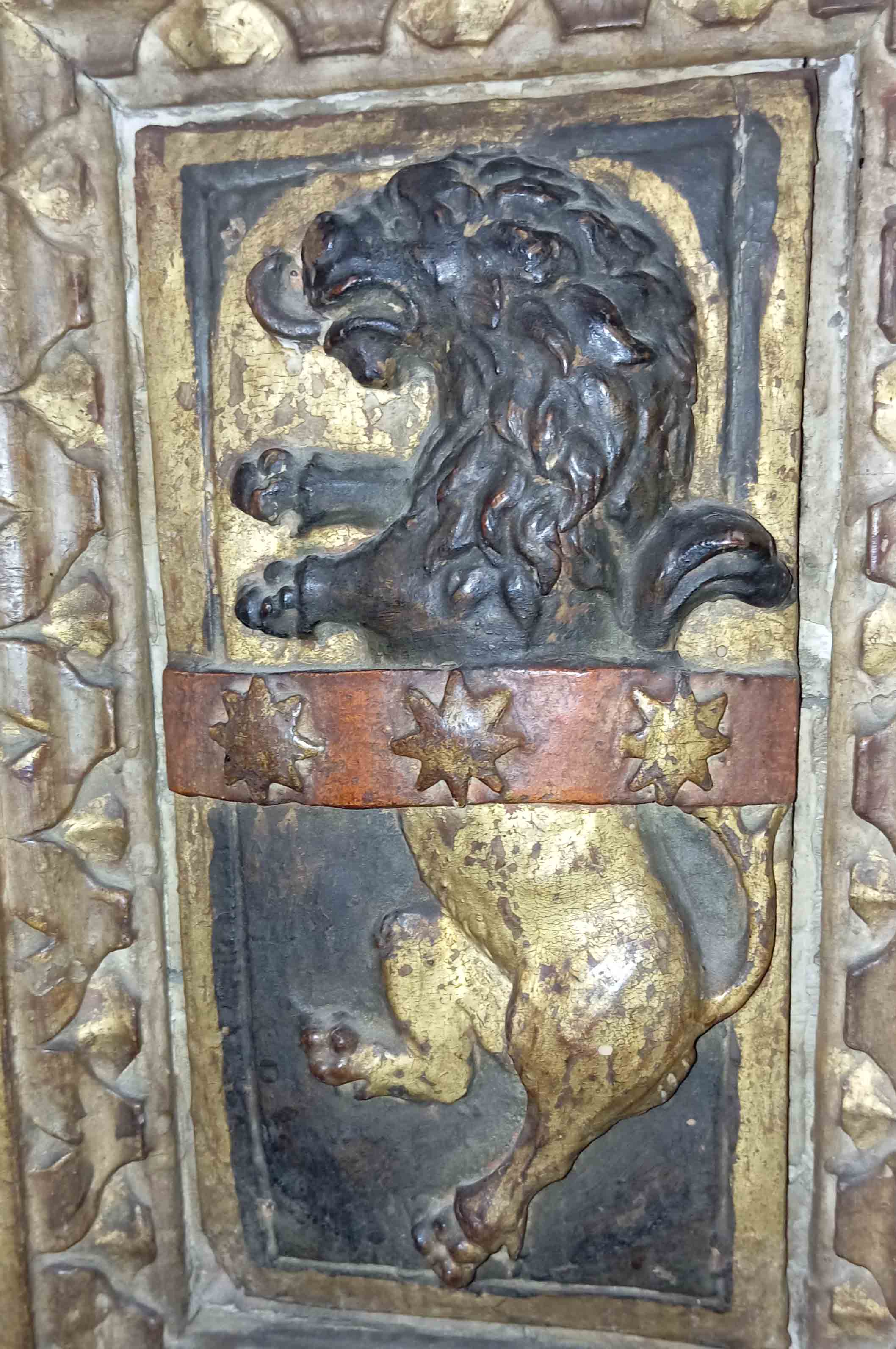 Quelli che vedo dalle foto, potrebbero anche non essere stemmi veri e propri, ma imprese o altro ancora perché non si vedono gli scudi...