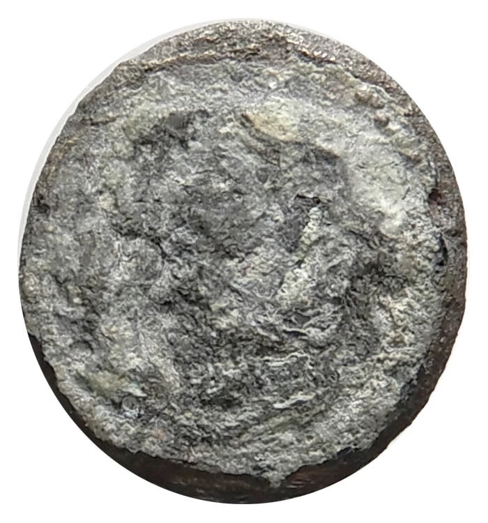 una testa di bufalo con anello al naso (molto fantasioso) Ma probabile elmo con svolazzi