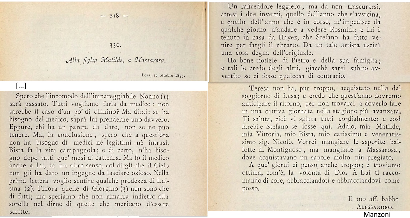 estratto di una lettera di Alessandro Manzoni (parente acquisito)
