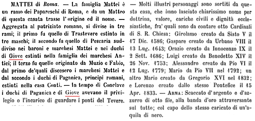Papa Urbano VIII (1623-1644) nel 1643 concesse infine a Girolamo Mattei, marchese di Giove, il titolo di duca.