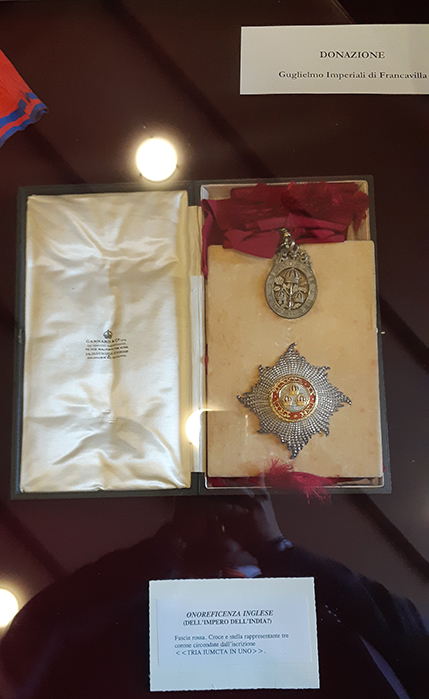 Presumo dunque siano (una parte) delle onorificenze del Marchese Guglielmo Imperiali di Francavilla (1858-1944), donate alla Società di Storia Patria Napoletana dalla sua famiglia https://it.wikipedia.org/wiki/Guglielmo ... rancavilla