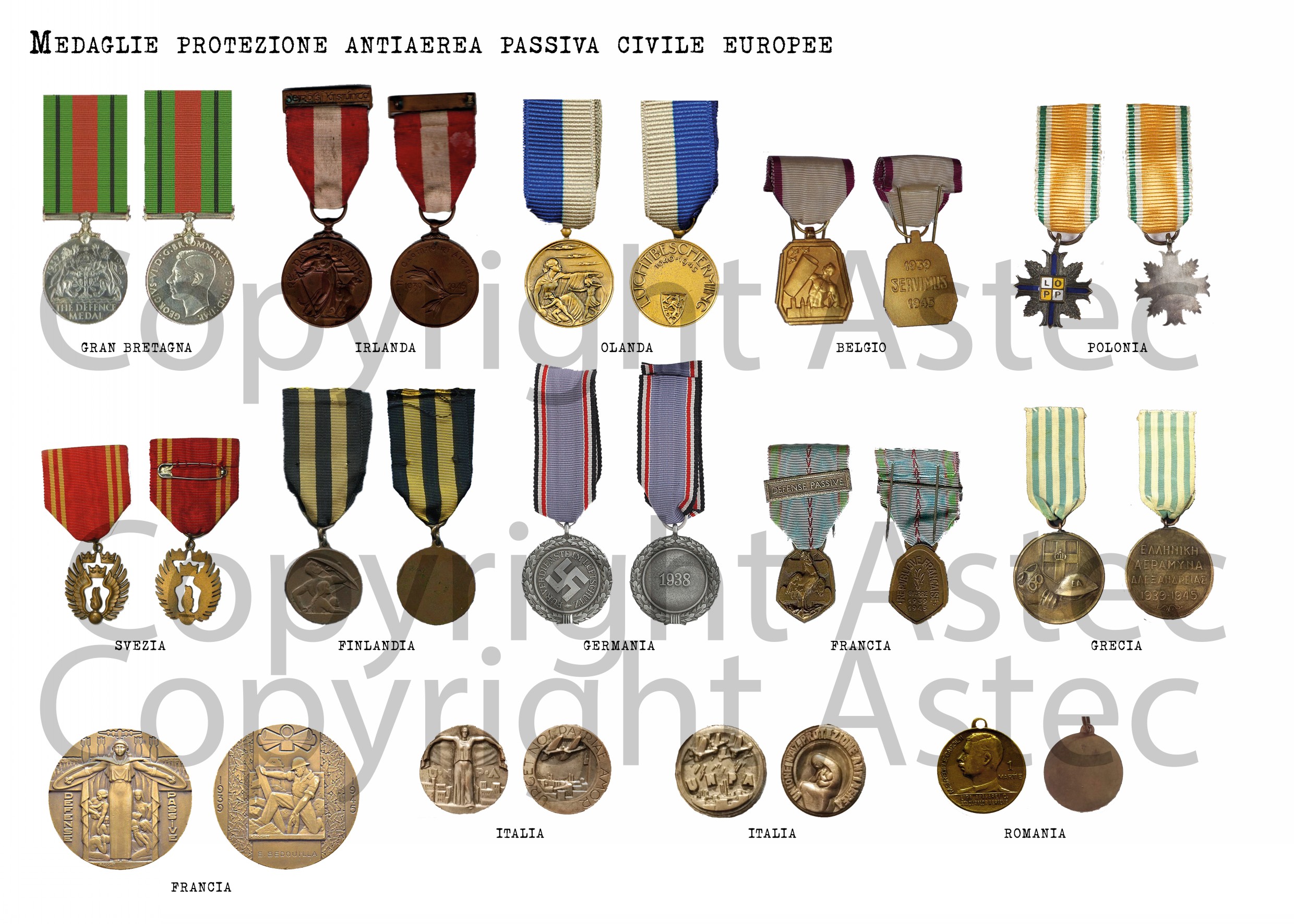 Mia moglie, esperta e appassionata di protezione antiaerea passiva (ha scritto libri e censito centinaia di rifugi italiani), sta allargando le sue ricerche al mondo delle medaglie dei vari Enti di protezione antiaerea passiva europei in riferimento alla II Guerra mondiale. Non è assolutamente esperta in ambito faleristico e quindi chiede a tutti noi di aiutarla nella ricerca e verifica.
