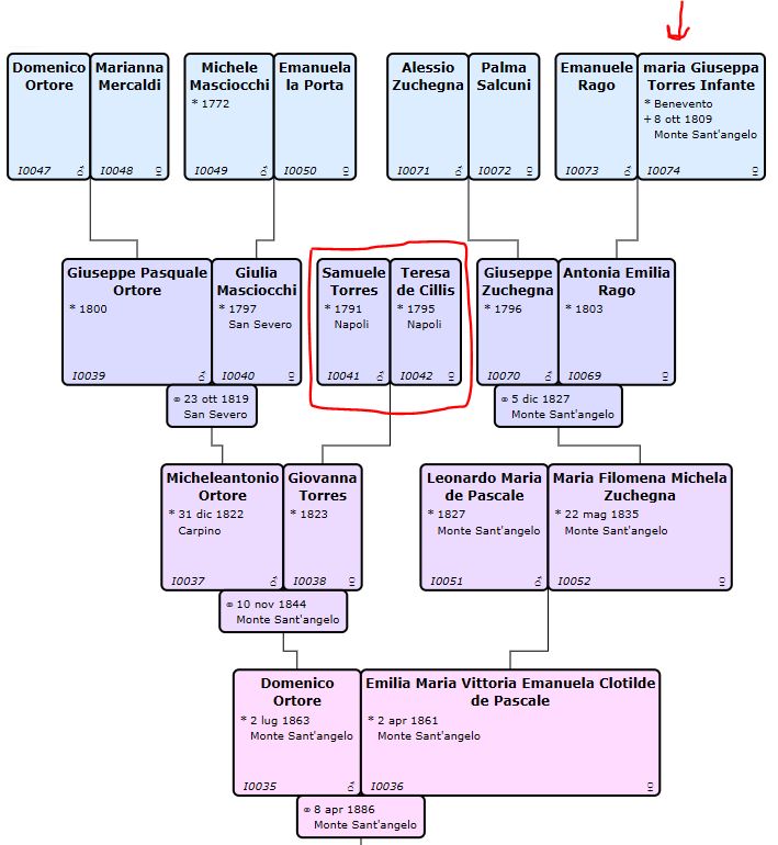 luigirusso66 ha scritto:Nel 1819 alla nascita di Giovanna il padre don Samuele è studente di 24 anni e la madre donna Maria Teresa de Cillis ha 25 anni. Probabilmente entrambi appartenevano a famiglie benestanti. Ho provato a cercare il matrimonio a Napoli nel quartiere Montecalvario, ma non l'ho trovato. Nemmeno sulle pandette dell'Archivio Storico Diocesano. La de Cillis potrebbe essere di Benevento e in questo caso il matrimonio potrebbe essere avvenuto in tale città.