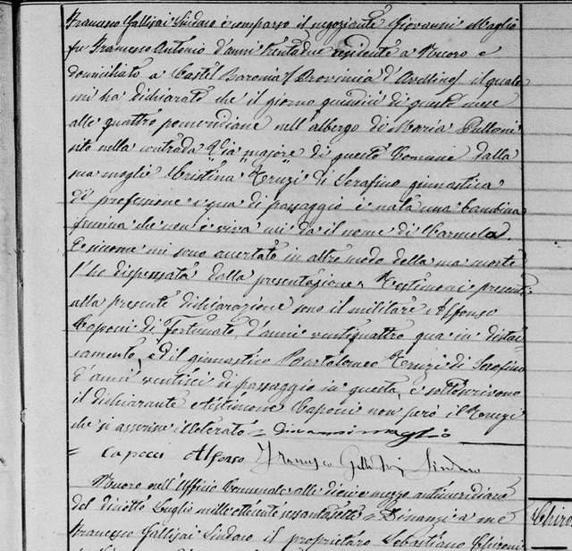 gmastrota88 ha scritto:Serafino è apparentemente morto tra il 1867 ed il 1870, la figlia Cristina era ginnasta e sposò il prestigiatore Giovanni Maglio di Castel Baronia (AV) da cui ebbe almeno due figli. Si menziona anche un Bartolomeo Truzzi di Serafino, ginnasta, nato attorno al 1841.