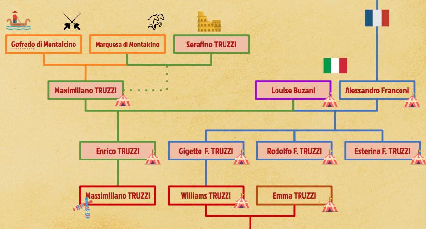 ho appena scoperto anche io di discendere da quel famoso Serafino Truzzi e Lucia Zignoli, tramite una figlia che nei vostri messaggi ancora non era stata individuata, Giuseppa , nata a fiorenzuola d'Arda il 23 ottobre 1843, mia trisnonna. Giuseppa non è, per quanto ne so, coinvolta negli "affari di famiglia" e sposa a Napoli un teatrante (chissà forse conosciuto durante spettacoli circensi) di 20 anni più anziano di lei, raffaele estevan, da cui nascerà nel 1881 Maria yelma, la mia bisnonna... aprendo il capitolo napolitano-egiziano della mia famiglia.. Se vuoi, puoi contattarmi e mi piacerebbe vedere il lavoro che hai fatto con la genealogia dei truzzi.. Quello che so al momento è che Serafino nasce a ravenna nel 1808... Ma gli archivi di Ravenna tacciono senza informazioni più precise... ho chiesto di cercare la morte a Perugia tra il 1867 (quando si sposa la mia trisnonna e lui risulta ancora vivo) e il 1881 quando muore una sua figlia e lui risulta "fu"... Spero che salti fuori qualcosa