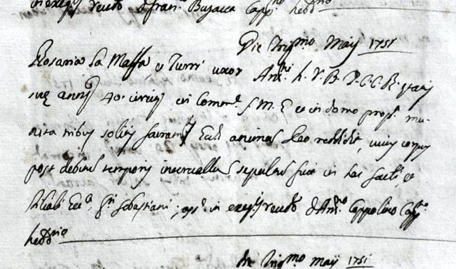 Poi vorrei aggiungere delle mie supposizioni (so che in genealogia non possono esserci supposizioni ma in mancanza di certezze, per adesso, voglio provare) per collegare Domenico LA MALFA morto nel 1773 figlio di Antonino (precedente atto di morte postato) a questa famiglia e quindi alla mia discendenza.