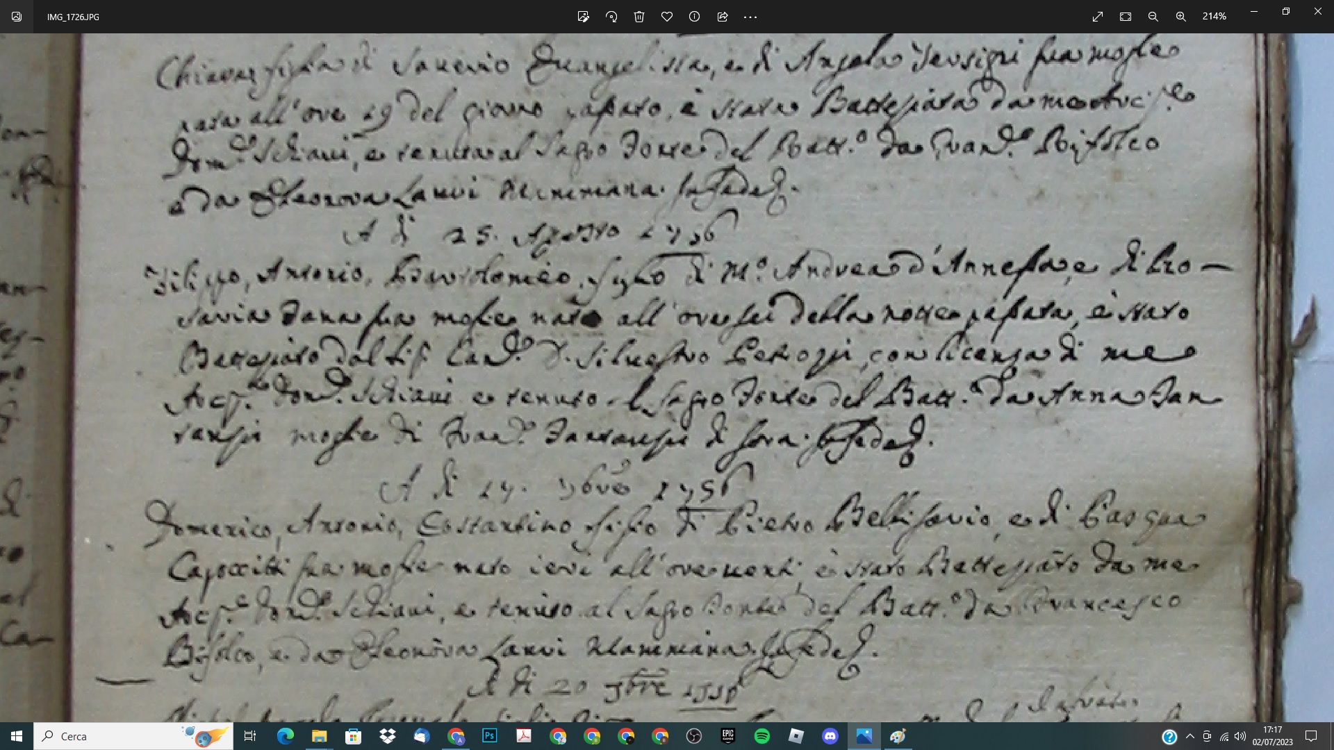 Chris Bonaventura ha scritto:Dopo diverse ricerche sono riuscito, attraverso un processetto matrimoniale, a risalire alla data di nascita (se non precisa, almeno con buona approssimazione) di un mio capostipite. L'informazione è stata tratta da un suo atto di morte presente all'interno del processetto matrimoniale del nipote (!). Si dice morto all'incirca a 55 anni a Cassino (FR) di un grave morbo e quindi verosimilmente nato attorno al 1732.