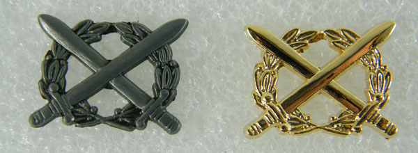 Ad ogni modo sono andato a controllare sul regolamento per l'uso delle uniformi di SME e ho trovato al cap. V. "Distintivi", art. 3 "Distintivi d'onore" che i distintivi per la promozione e per l'avanzamento per merito di guerra consistono entrambi da due gladi incrociati e la differenza è data proprio dalle fronde che indicano la "promozione", mentre l'assenza delle stesse indica "l'avanzamento": da questo deduco che l'ambito, cioè la "guerra", è invece indicato dai gladi.