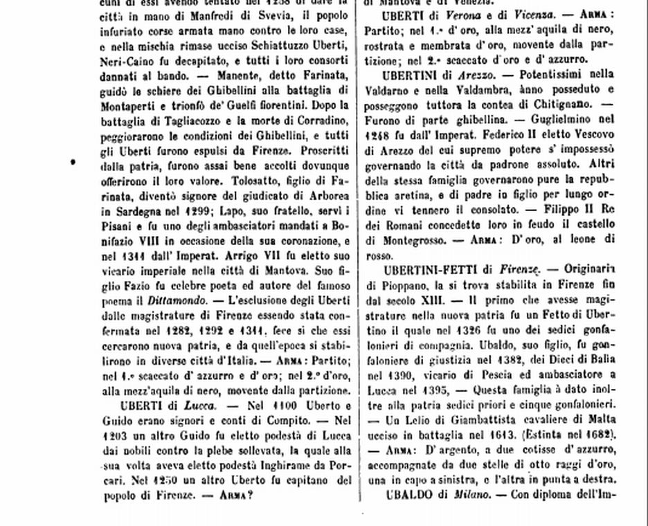 E fa un certo effetto leggere sotto lo stemma Uberti il cognome Degli Uberti: in pratica una famiglia diversa con cui niente hanno da spartire