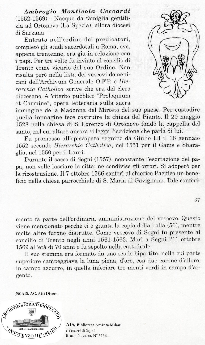 1) il cognome esatto è Monticola Ceccardi o Monticoli o Monticoli Ceccardi
