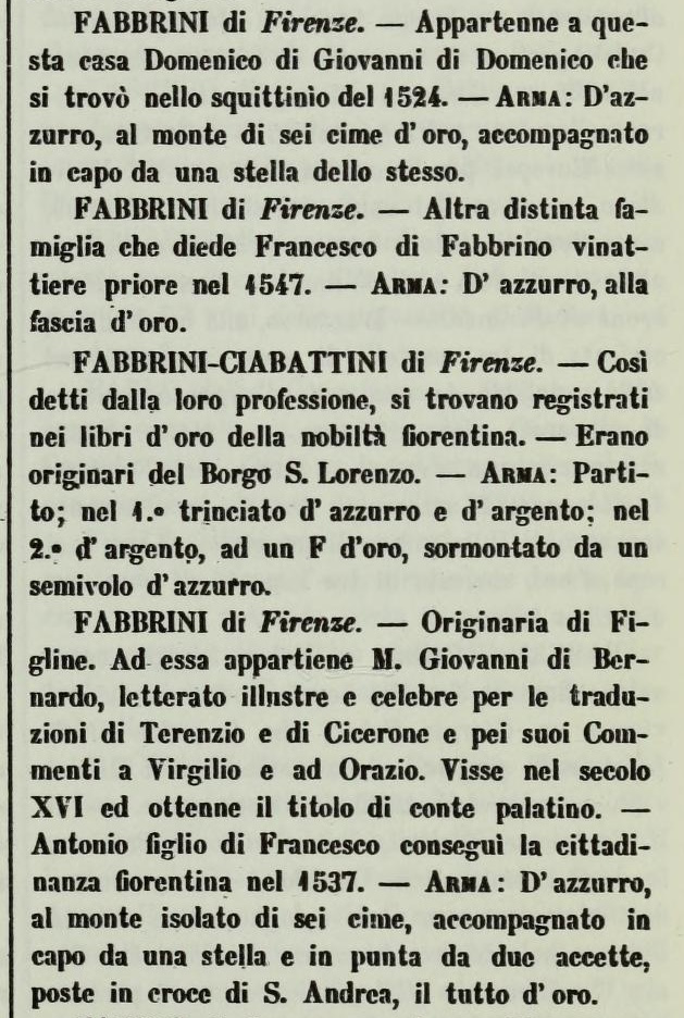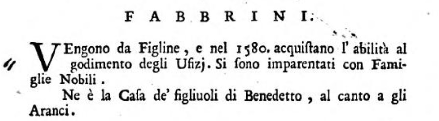 già a FI ci son fam. Fabbrini con stemmi differenti ma da idenficare il quartiere