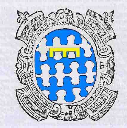 alias:di nero al leone d'oro tenente con la branca destra uno scudetto ondato d'argento e d'azzurro, al lambello come sopra.