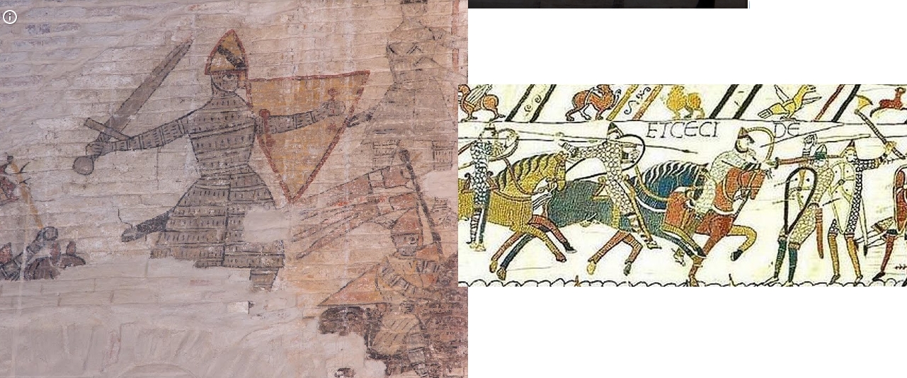 quelli che muovono da dx hanno una foggia di elmo diverso ( direi piu' moderno ) di quelli che muovono da sx uno elmo che pare di tipo normanno ( con la protezione nasale )