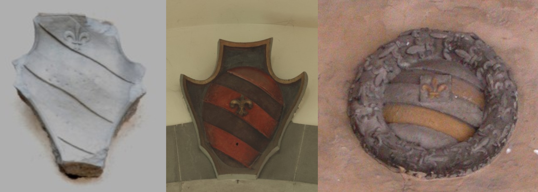 nel palazzo Datini ci son vari stemmi (con uno stemma con e senza i gigli)