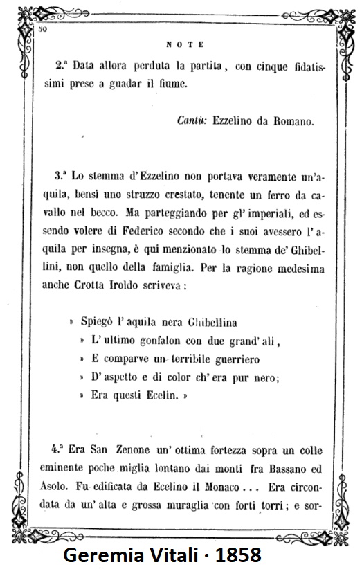 Si potrebbe supporre che questo stemma, in realtà, sia "apocrifo", attribuito agli Ezzelini chissà quando e chissà perchè, e poi ripetuto senza vaglio critico in tutti i repertori - tra cui anche il "Litta" ove il fasciato se non ricordo male è nero/oro - che ne scrissero.
