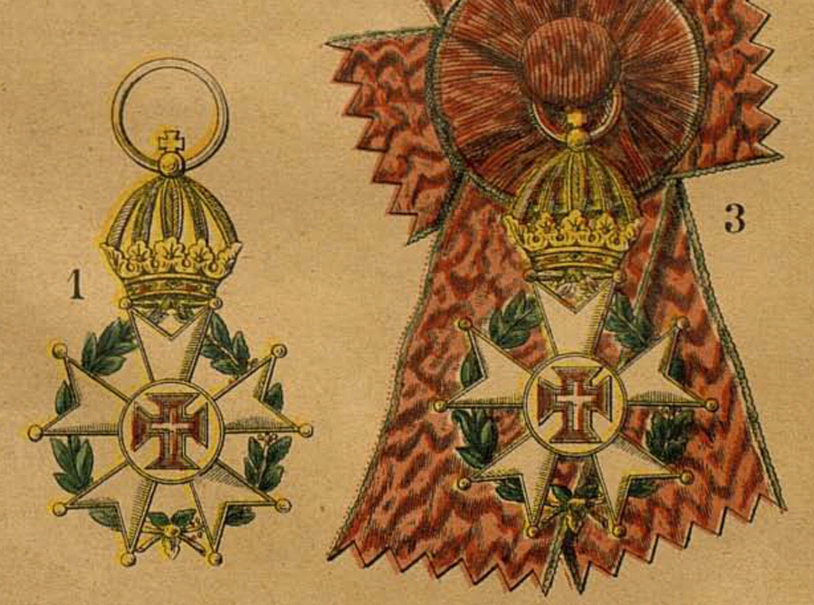 Molte fonti e cataloghi d'asta riferiscono come queste decorazioni a croce biforcata sarebbero state una specie di "divisione militare" degli Ordini in questione e che quindi abbiano "convissuto" per un certo periodo con le altre, da ritenere a questo punto destinate solo ai conferimenti "civili".
