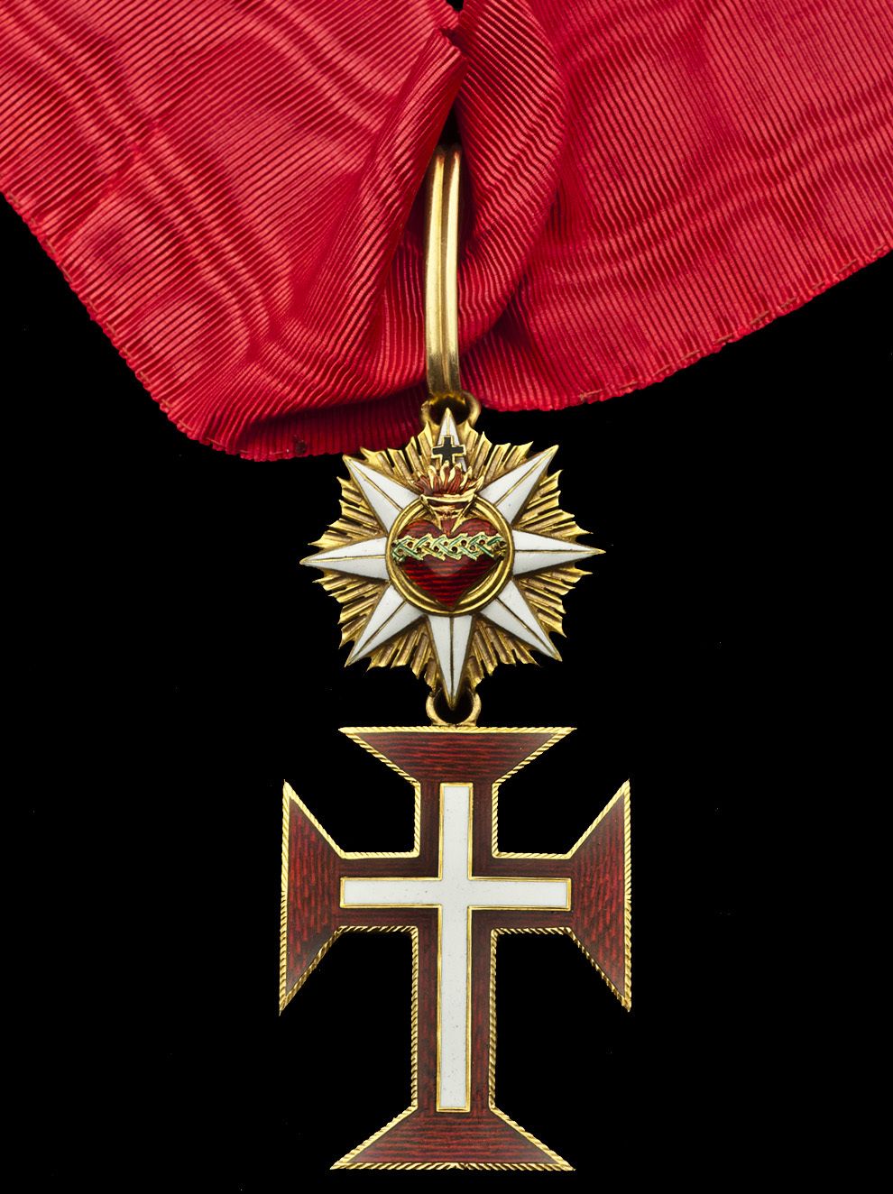 Trattasi dell'Ordine di Cristo portoghese, nella tipologia tipica del XIX secolo, prima che a cavallo fra XIX e XX (non rammento la data esatta) venissero cambiate le insegne, rendendole simili a quelle attuali (prima coronate dal Sacro Cuore, poi rimosso con l'avvento della repubblica portoghese).