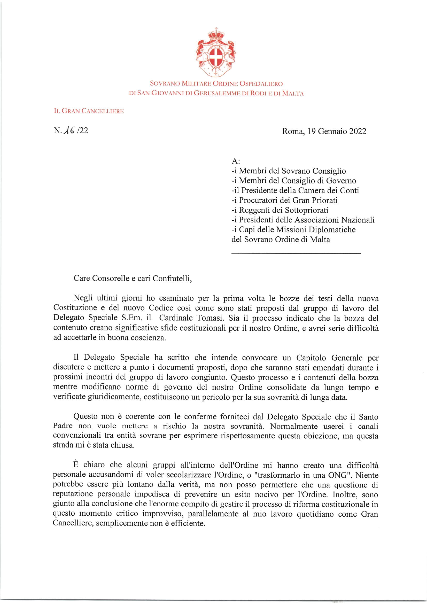 modo, rispetto a quello già tentato, di sovvertire il Sovrano Militare Ordine senza che si