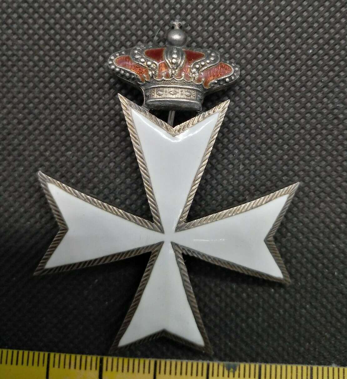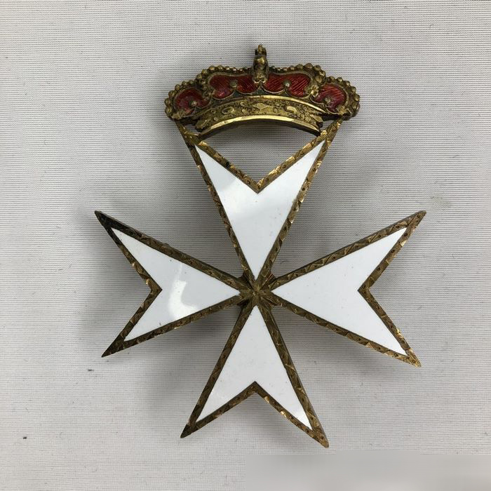Si tratta infatti della croce toracica dei Cavalieri d'Onore e Devozione in Spagna ma, in realtà, la sua corretta rappresentazione è con il cofano della corona in nero, non smaltato di rosso come appare nello stemma fotografato.