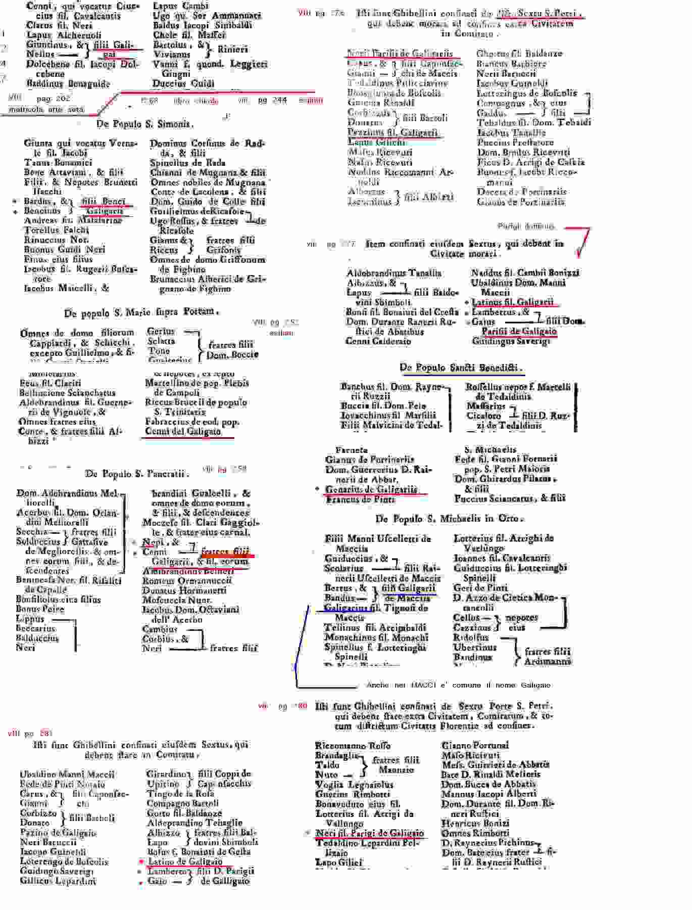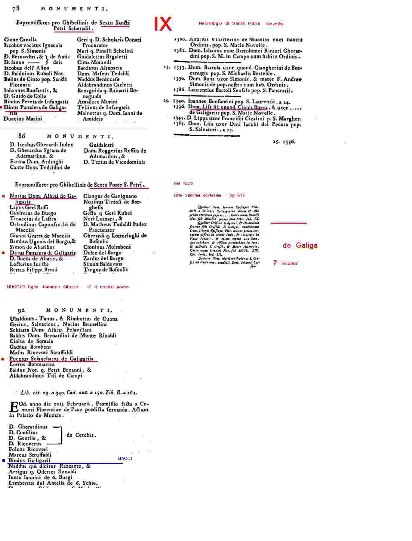 Vi e' una lista di magnati nello statuto del podesta' del 1325 ( che non conosco ) non so se vi compaiano ancora i Galigai