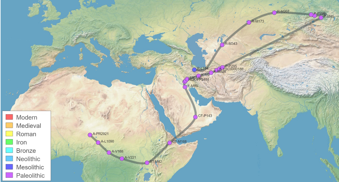 Y-DNA mtDNA Mean Age (ybp) Country - Culture